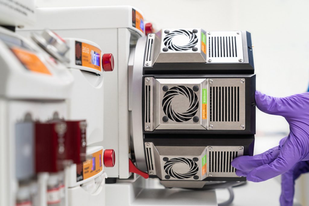 1つのリアクターに最大8つの交換可能な単一波長モジュールを搭載できます。同じ値の光源を8つまで追加できることで、新しい化学反応にアクセスするために複数の波長で反応を実行したり、反応の最適化のための迅速なスクリーニングとスケールアップを行えます。